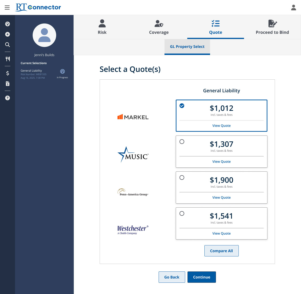 We’ve made our most important page even better. The redesigned "Select a Quote" interface now offers a cleaner, more intuitive experience that helps you move faster, with greater confidence, allowing easy comparison of quotes across multiple carriers.