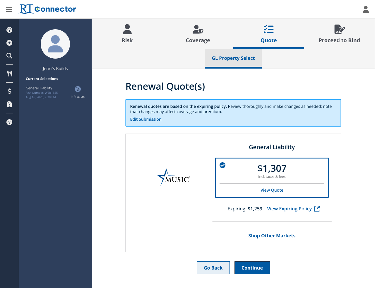 As part of our brand refresh and our continued commitment to improving the RT Connector experience, we’re excited to introduce two improvements to the user interface. These enhancements are built to make quoting and renewals faster, easier to navigate, and more intuitive. They were directly shaped by your feedback, and we’re confident they’ll bring meaningful improvements to your workflow.